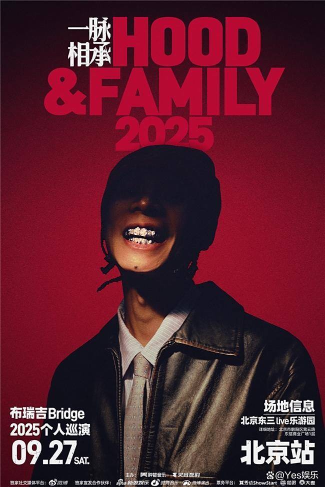 布瑞吉新专辑《一脉相承Hood&Family》有着极强的音乐性与故事性,用虚实结合的艺术手法展现了“在传承中不要遗忘过去,在传承中永远保持革新,在传承中循环更替,守住自己的根”的专辑概念,跻身网易云音乐2025上半年最佳中文说唱榜单TOP10。《一脉相承Hood&Family》布瑞吉Bridge2025个人巡演足迹遍布重庆、成都、上海、杭州、广州、深圳、北京,呈现出有着最纯正本土表达、最燃炸感官体验的说唱现场,未来还会带着“第一现场”去到更多地方。