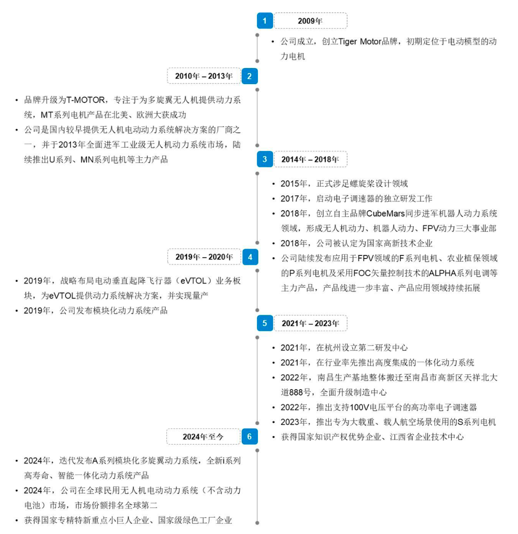 在无人机赛道站稳脚跟后,公司凭借对行业趋势的敏锐洞察,开启多元化布局:2018年,建立自主品牌CubeMars切入机器人动力系统领域,实现机器人关节核心部件自研自产;2019年,率先战略布局eVTOL动力系统,提前抢占低空经济前沿赛道。